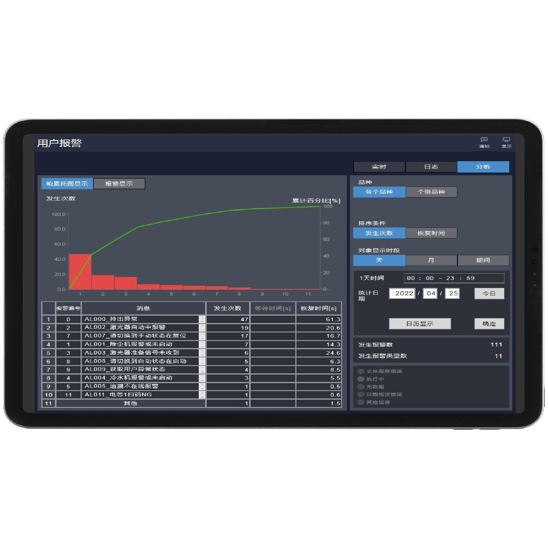 • 影响设备OEE的可视化报警